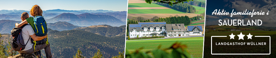 I er landet i den smukke region Sauerland – en rolig beliggenhed med kuperet landskab, bindingsværksbyer, disede bjergtinder og klare søer – og så har ferieregionen et væld af historiske seværdigheder foruden et af de mest varierede aktivitetsudbud i Tyskland. På jeres ferie får I hjemme i den idylliske landsby Altenfeld, blot 14 km fra centrum af den traditionelle og livlige skisportsby Winterberg, der uden for vintersæsonen er et oplagt udgangspunkt for vandreture, cykeludflugter og oplevelser i området. Vel ankommet til "landet med de 1000 bjerge" bliver I indkvarteret på familiehotellet Landgasthof Wüllner, hvor landlig idyl skaber en helt særlig atmosfære og får skuldrene til at falde ned. Og på jeres feriebase kan I nyde udsigten over de omkringliggende marker og bjerge fra det regionale og sæsonbestemte køkken, der bl.a. byder på kød fra eget slagteri og friske mejeriprodukter fra nabogårdene.